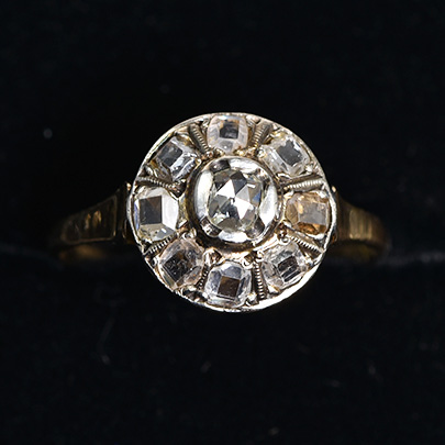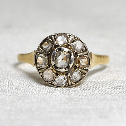 丸いフォルムの中に綺麗にダイヤが収まったクラスターリング。