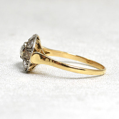 それを取り巻く8石のダイヤはスクエアカットです。