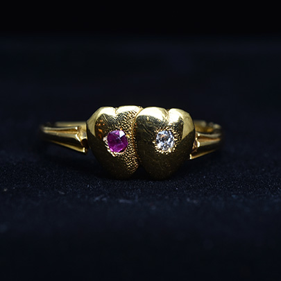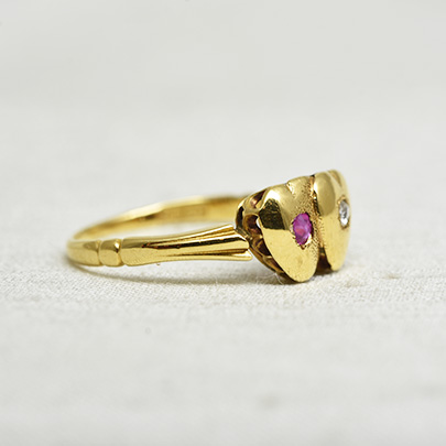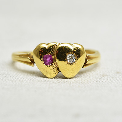 18金を用いたダブルハートのリング。