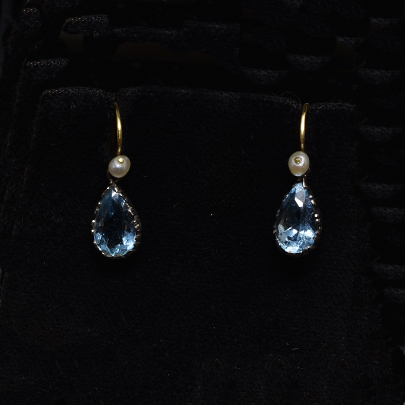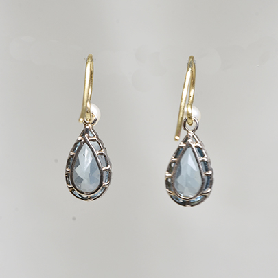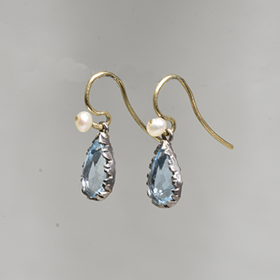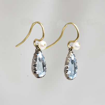 小さなパールからしずくが滴るようにセットされているアクアマリンが