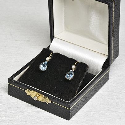 Sold ゴールド・アクアマリン・パールイヤリング [E-237]