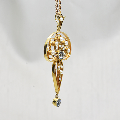品名:15ct,アクアマリン・パールペンダント