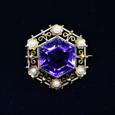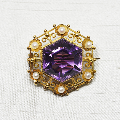 10ct.アメシスト パールブローチ [B-154]