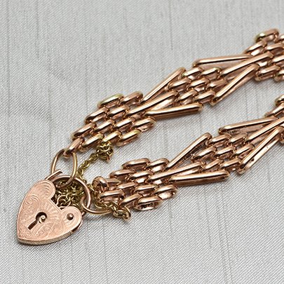 9金を用いた錠前型のクラスプが特徴的なブレスレット。