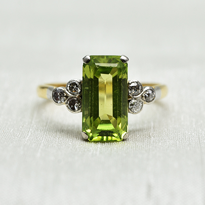 ペリドットはより鮮やかに、ダイヤモンドはより輝くように工夫されています。