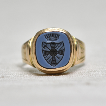 クロスは楯に使用するには便利で こちらのリングの紋章のようにクロス以外の場所へバランスよくモチーフを入れることが出来ます。、