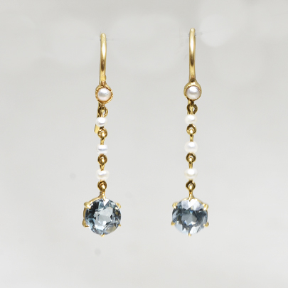 Sold ゴールド・アクアマリン・パールイヤリング(11ct.)