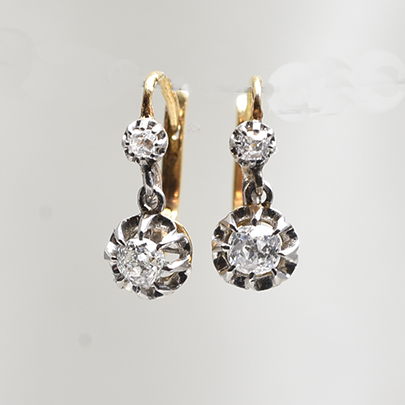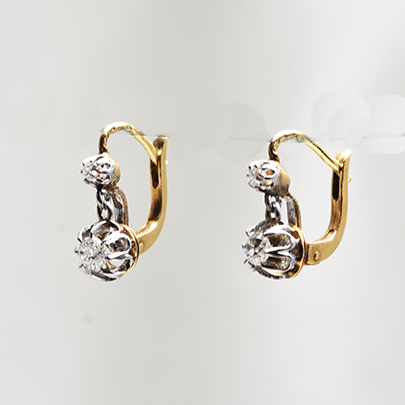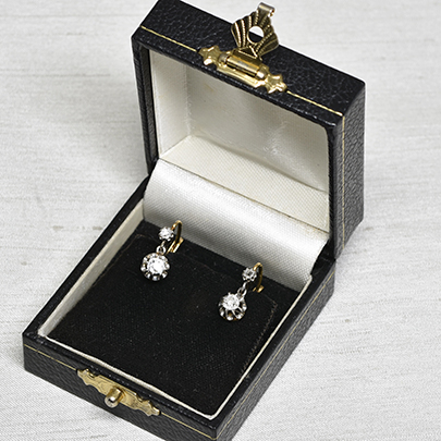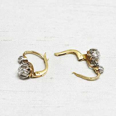 ひとつはオールドヨーロピアンカットダイヤ、もう片方にはオールドマインカットダイヤがセットされています。