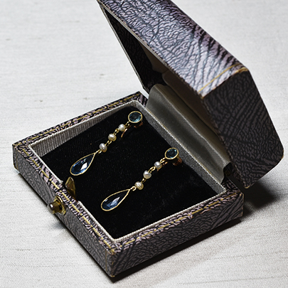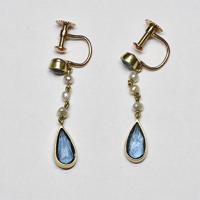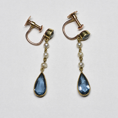 20世紀初期に作られましたアクアマリンとパールのイヤリング。