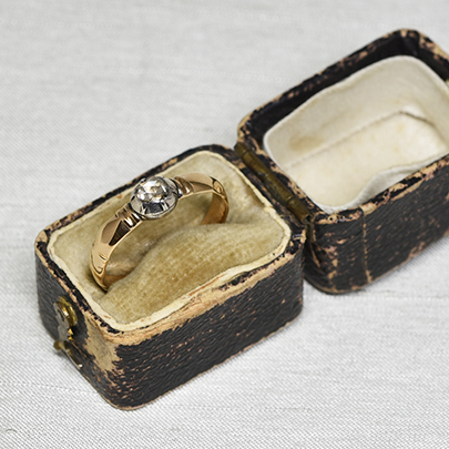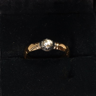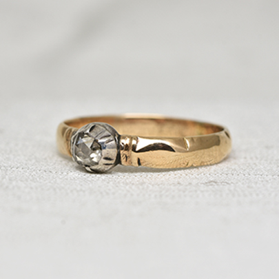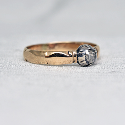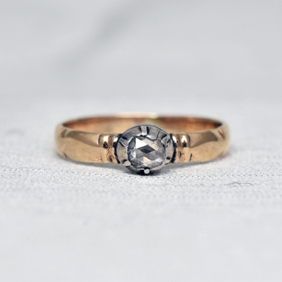 1900年頃にオランダで作られましたアムステルダムカットとも呼ばれるダッチローズカットダイヤが使用されたソリテールリング。