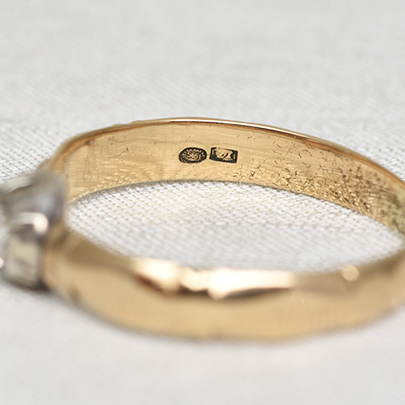シャンクの内側にはオランダ14金を表す葉っぱの刻印が確認できます。
