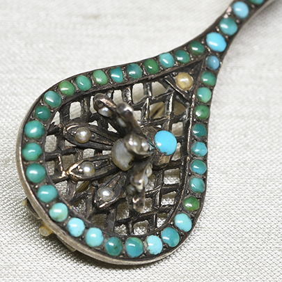 こちらはヴィクトリアン期に作られましたバトミントンラケットデザインのブローチ。