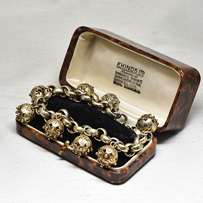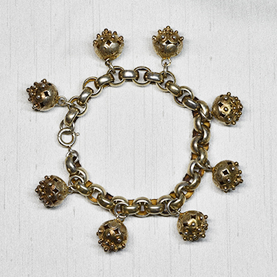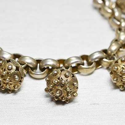 19世紀後期のシルバーチャームブレスレット。