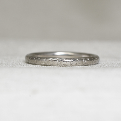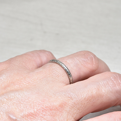 幅約2mmの半円状の甲丸リングですが、内側の肌に触れる部分にも多少丸みを持たせている為とても着け心地がよいです。