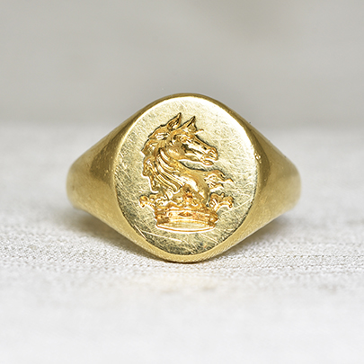 王冠と馬のモチーフが施された20世紀後期に作られましたインタリオリングです。