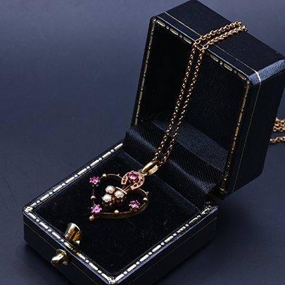 素材:15金・ルビー・パール チェーンは9金