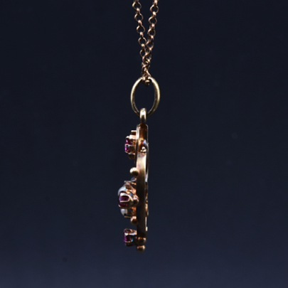 品名:ゴールド・ルビー・パールペンダント 15金 (チェーンは9金)