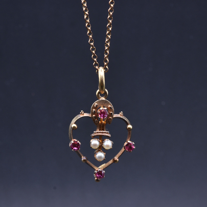 ゴールド・ルビー・パールペンダント 15金 (チェーンは9金) [C-38]
