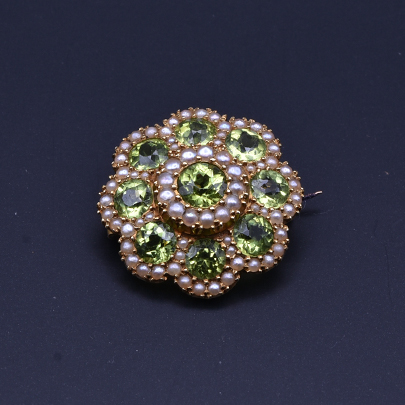 品名:ゴールド・ペリドット・パールブローチ