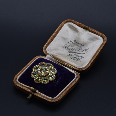 ゴールド・ペリドット・パールブローチ(オリジナルケース付き) [B-175]