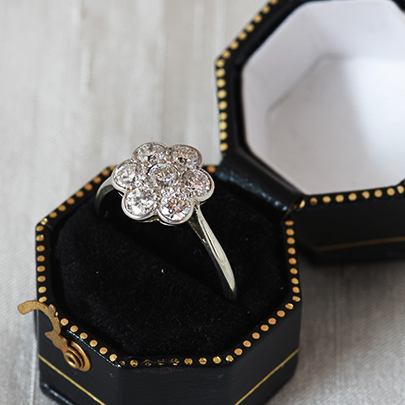 華やかで可憐なこちらのリングは、ファッションリングとしてはもちろん エンゲージやアニバーサリーリングとしてもお勧めです。