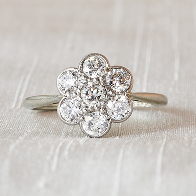 とても強い輝きのオールドブリリアンカットダイヤが7石並んでいます。